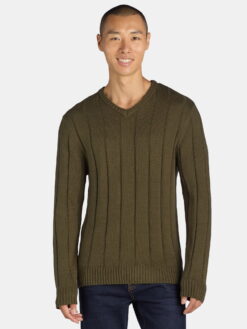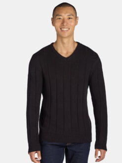 - Features: Drop needle stitch pattern; ribbed V-neck, cuff and hem; soft knit fabric