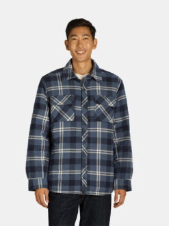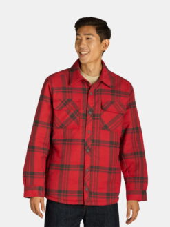 Looking for a perfect jacket that can keep you warm and comfortable during outside activities or on the go errands? Check out this Men's Quilted Flannel Shirt Jacket from . It is designed with a polyester fill (polyfill) and high pile fleece lining that provides exceptional warmth and versatility. The jacket features set in sleeves and rubberized matte finished snaps on the center front and cuffs (which are adjustable). Plus, it comes with various rubberized snap closure pockets - chest and hand pockets. This jacket is perfect for Fall through Winter and it is offered in a wide range of plaids.