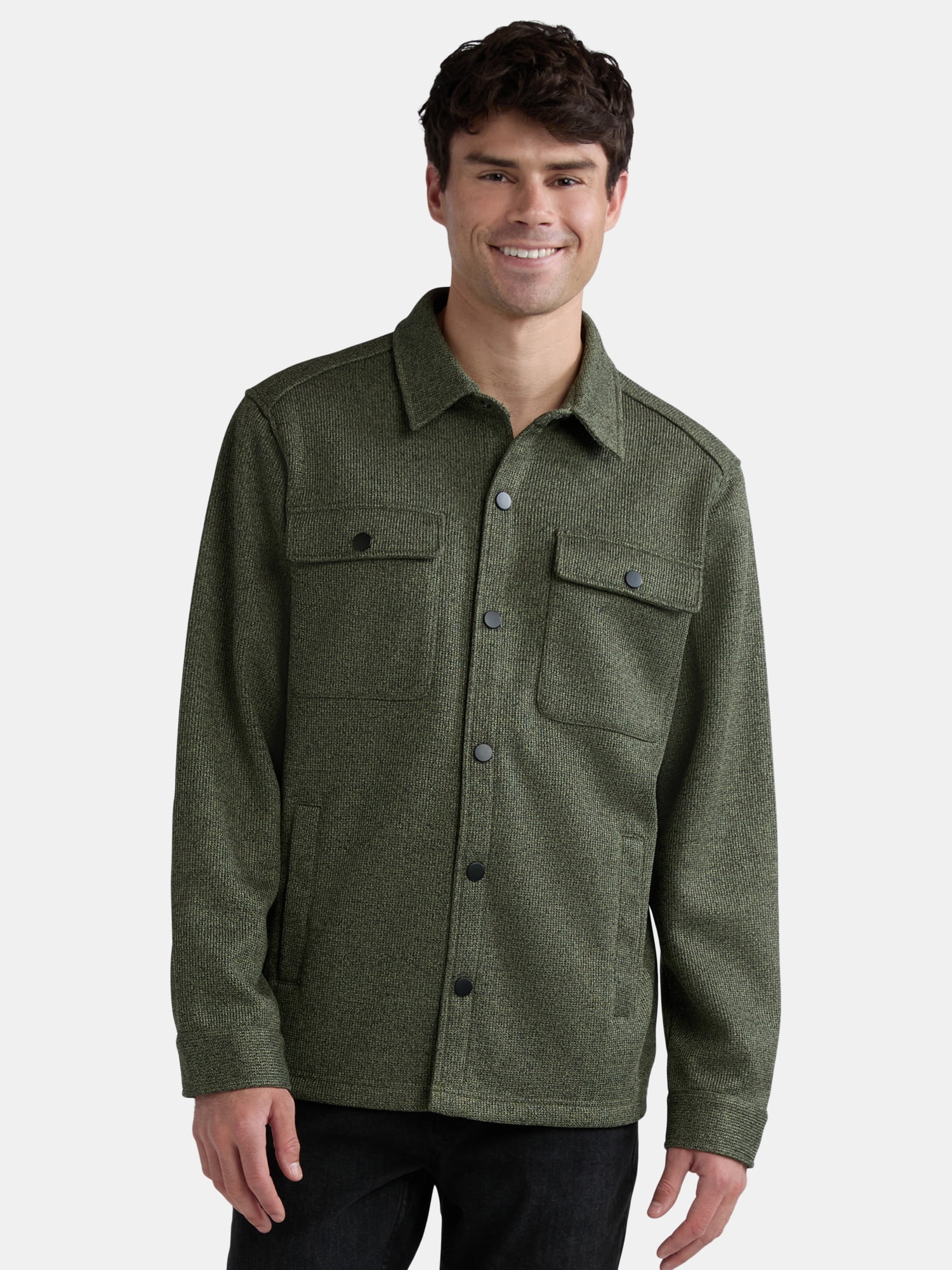 Found: your go-to outerwear favorite for the season. Knit Fleece Shirt Jacket for Men features a snap-button front for a secure, comfortable fit with specialty fleece lining and a mid-weight design for the perfect amount of warmth. Layer it over a hoodie or wear it over a shirt for a complete look. This men’s jacket has a multi-pocket front that’s perfect for storing essentials. Now available in six fashionable colors